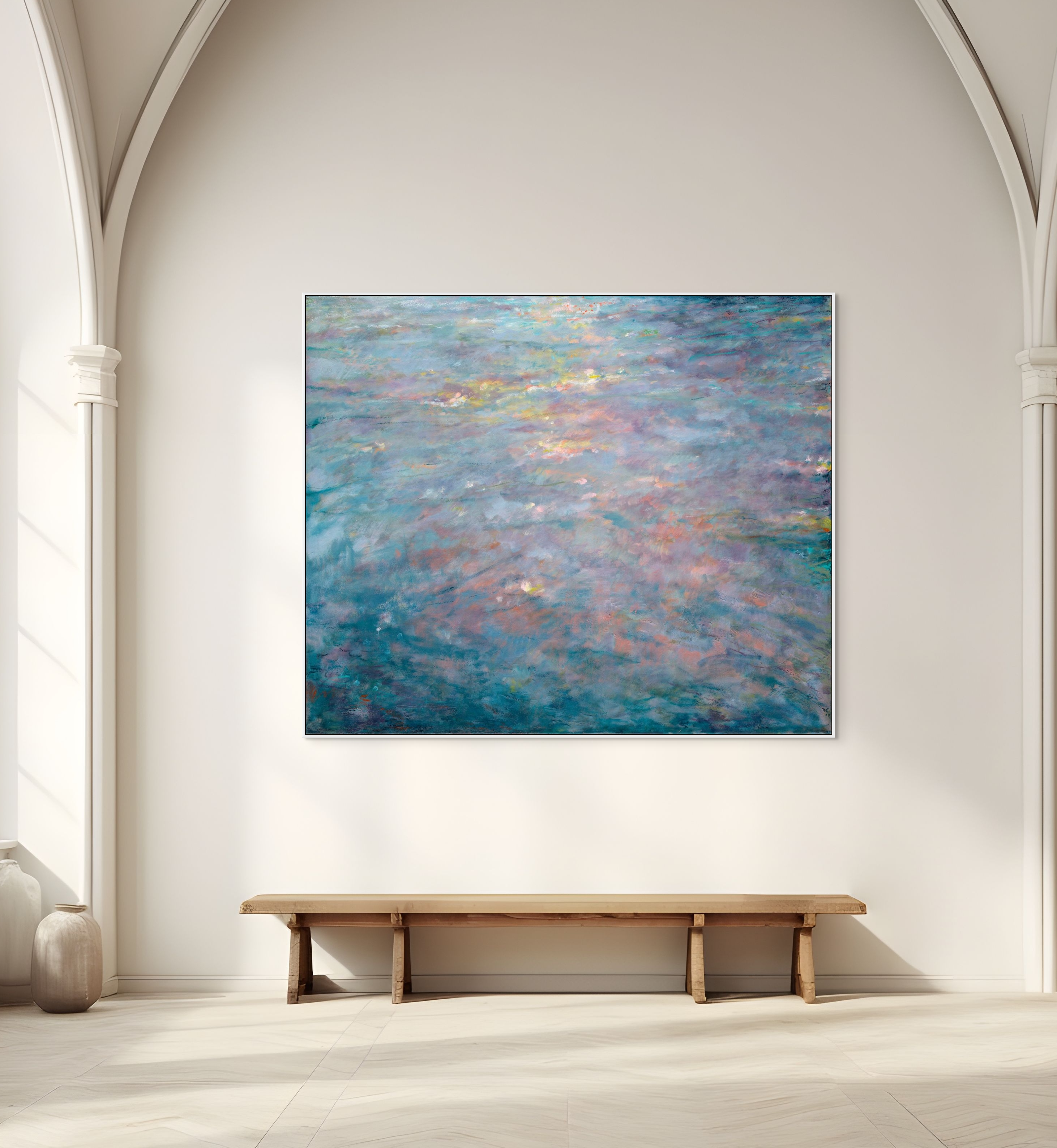 Her work explores Reflective Realms—spaces where land, water, and memory dissolve into one another. Painted slowly, from her South Coast studio, each piece holds the stillness of a moment: sunlight on skin, a shifting tide, a feeling remembered.